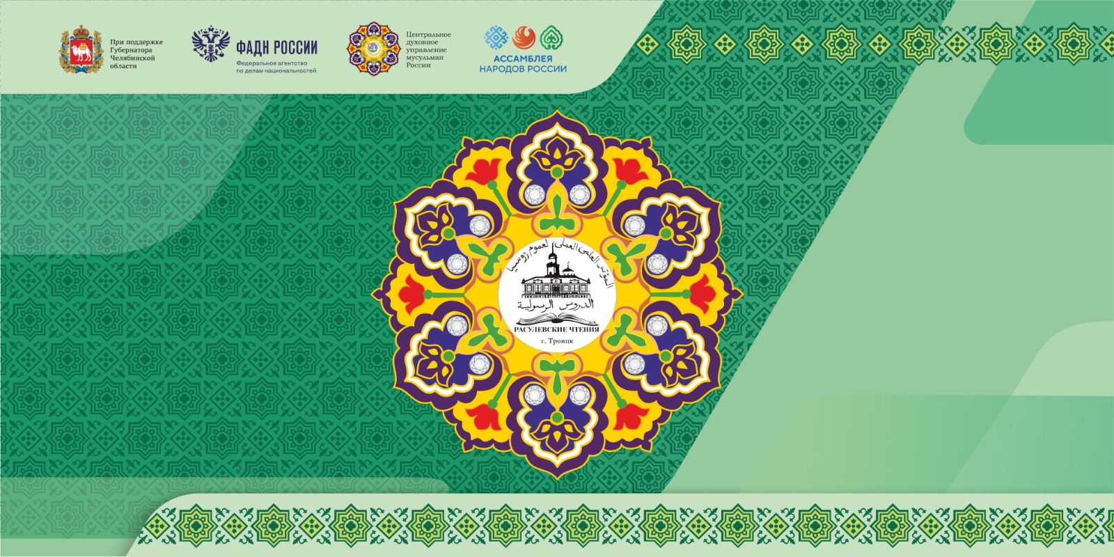 Конференция проходит при поддержке Губернатора Челябинской области. Также организаторами выступают: Федеральное агентство по делам национальностей, Центральное духовное управление мусульман России, Ассамблея народов России, Челябинский государственный университет, администрация города Троицка, АНО «Центр социально-экономического развития «Инициатива».