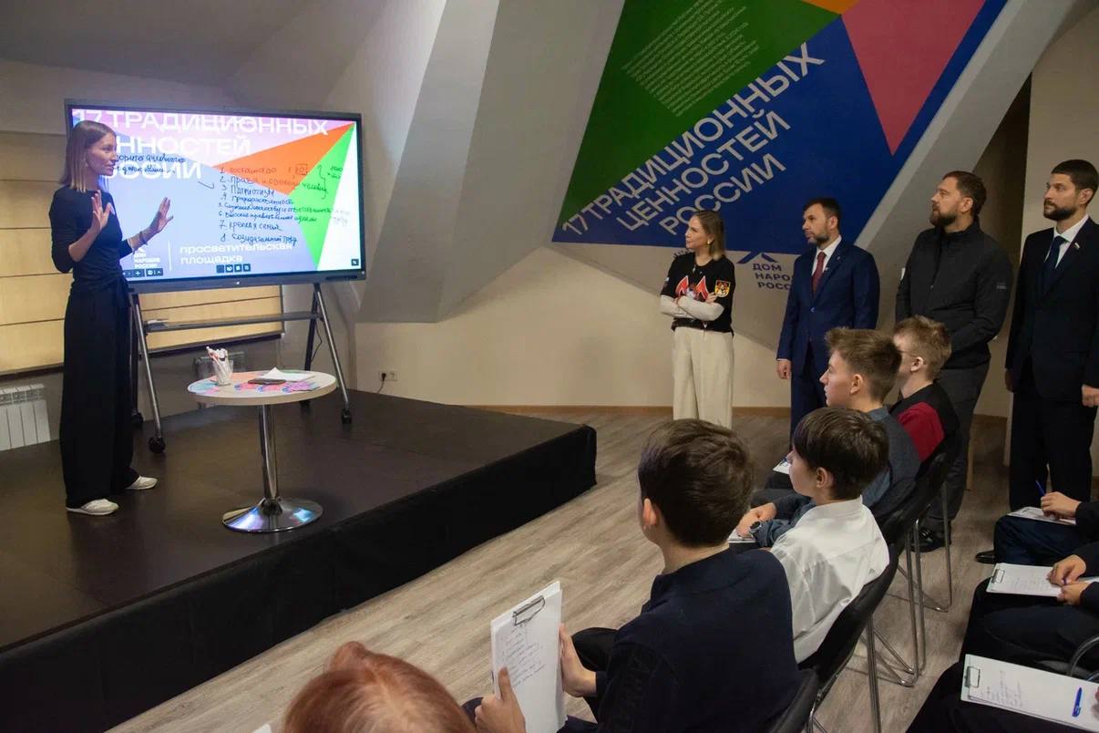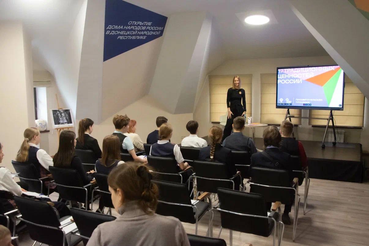 В рамках открытия Дома народов России в Донецкой Народной Республике прошёл интерактивный урок «17 традиционных ценностей России»