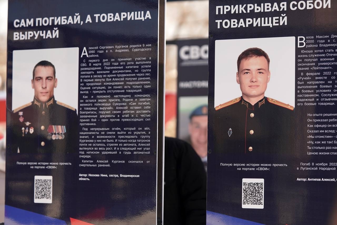 На выставке представлены истории о владимирских доблестных бойцах - участниках специальной военной операции. Это герои, которые находились на передовой и отдали свою жизнь, защищая боевых товарищей - представителей многонационального народа России в ходе СВО.